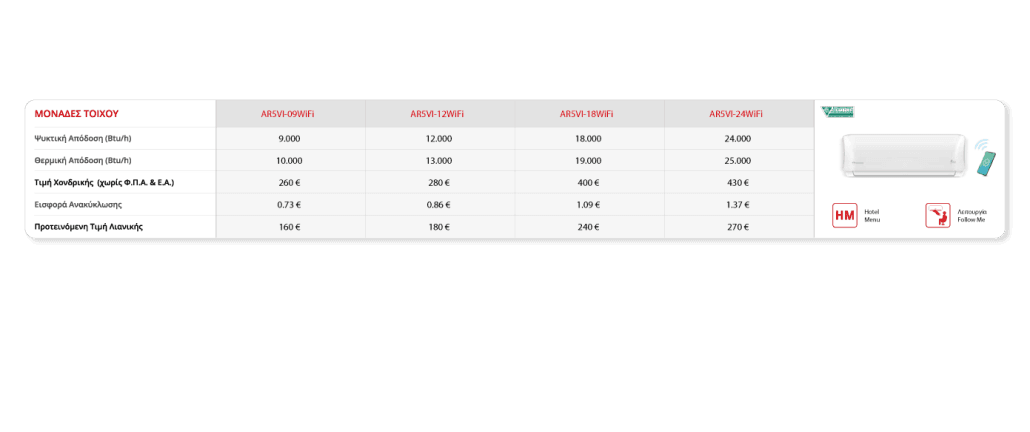 | Επιλέξτε Τύπο: | AR5VI-09WiFi, AR5VI-12WiFi, AR5VI-18WiFi, AR2MVIS-24WiFi |